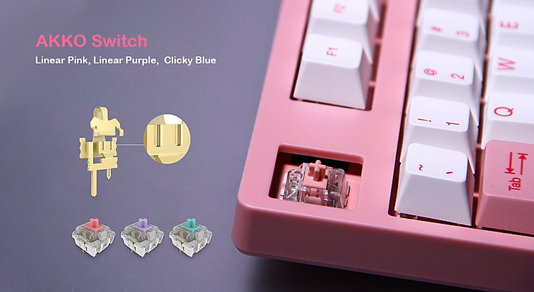 Switch AKKO cho trải nghiệm rất khác so với những Switch rẻ tiền khác trên thị trường, nó thừa sức làm hài lòng những người mới tập chơi bàn phím cơ cũng như là những người chơi phím cơ lâu năm. Switch AKKO hiện nay đang có 3 sản phẩm chính đó là: AKKO Pink, AKKO Purple, AKKO Blue .Cách đặt tên của các dòng Switch này tương tự như Cherry và nó cũng có điểm nhấn tương đồng.