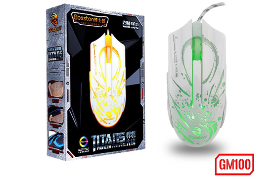 Cảm nhận đầu tiên của chuột chơi game Bosston GM100 là nước sơn sáng bóng, kiểu dáng đẹp vô cùng ấn tượng.