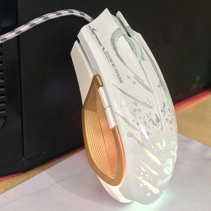 Cảm nhận đầu tiên của chuột chơi game giá rẻ Bosston GM100 có đèn LED là nước sơn sáng bóng, kiểu dáng đẹp vô cùng ấn tượng