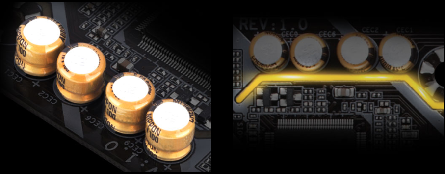 Bo mạch chủ GIGABYTE sử dụng tụ âm thanh cao cấp. Những tụ điện chất lượng cao này giúp cung cấp âm thanh độ phân giải cao và độ trung thực cao để cung cấp hiệu ứng âm thanh trung thực nhất cho game thủ.